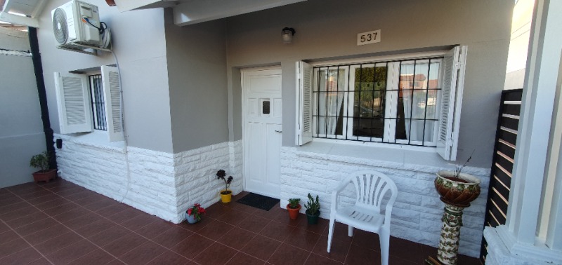 Chalet en PH. En el barrio de Villa Primera, se encuentra este precioso chalet a la calle, con entrada totalmente independiente y en excelente estado. Luminoso, de ambientes amplios y cómodos, el mismo cuenta con: dos dormitorios (principal -con placard embutido y piso de parquet- y un segundo cuarto, más pequeño); cocina–comedor integrados por barra separadora, baño y un lavadero de interesantes proporciones. Además, cuenta con un pequeño patio semicubierto y parrilla.