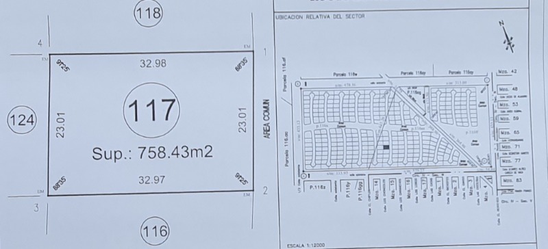 LOTE NRO. 117 SUPERFICIE TOTAL DE 758 M2 NIVELADO Y CON POZO AGUA Y BOMBA INSTALADA.
