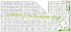 Organizativamente el paisaje se divide en tres situaciones diferentes. La primera es la de escudo, como mencionábamos. Éste, se divide entre escudo exterior y protección interior. La interior se trata de la arboleda forestal urbana; los árboles de la calle. Se eligieron distintas variedades de árboles (todas aclimatables a las condiciones del lugar) según el tipo de vía de circulación: Boulevard o Calle secundaria. De esta manera mejoramos la organización del espacio al detectar la particularidad de la especie, sabremos si estamos en una calle que desemboca a la salida o a uno de los cul-de-sac. También, distinguimos cada calle según la especie reinante en la rotonda del cul-de-sac, de esta manera sabremos si estamos o no en la calle de la propiedad que buscamos. Más a allá de la especie predominante en cada rotonda las calles secundarias serán arboladas con dos especies de Fresnos para lograr un variado colorido otoñal, entre amarillos dorados y rojos borravinos.
