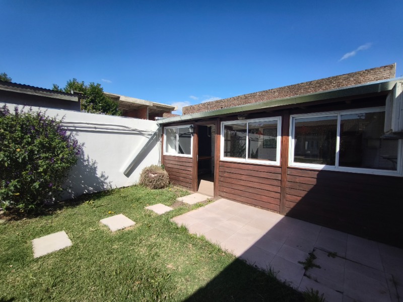 La propiedad cuenta con cochera descubierta para dos vehículos en forma paralela. Al ingresar al inmueble nos encontramos con un estar integrado a la cocina, dos dormitorios con placares y un baño completo. saliendo por la parte trasera desde la cocina cuenta con un lavadero cubierto con cerramiento de aluminio , sector de patio, y amplio jardín que culmina en un quincho con toilette. La unidad cuenta con acs por termotanque a gas y calefacción por calefactores tb. No abona expensas !!! .