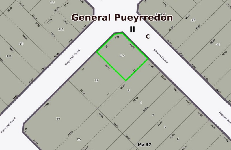 LA 27 CON 550,16 M2 DE TERRENO LIBRE CON 23 METROS DE FRENTE POR LA CALLE HUGO DEL CARRIL,