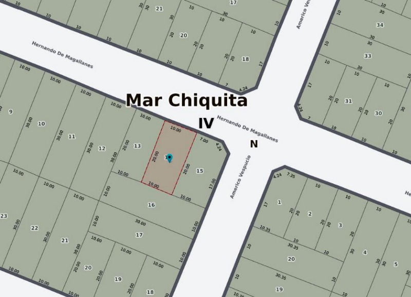 12 METROS DE FRENTE, OCHAVA DE 4,24 METROS, FONDO DE 15 METROS Y LATERALES DE 27 Y
